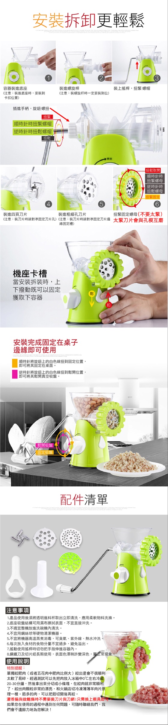 ●滿足料理多方面的需求,麵/肉/佐料,一機搞定,安裝又簡易
